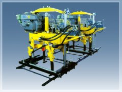 XYD-2A型:兩臺搗固機放置在同一走行架上作業(yè),復(fù)線地段作業(yè)時配置單側(cè)下道架,兩臺搗固機下道在同一下道架上(XYD-2A1);單線地段作業(yè)時配置雙側(cè)下道架,兩臺搗固機分別下道在兩下道架上(XYD-2A2)。下道架懸掛在走行架一側(cè)或兩側(cè),隨機走行。